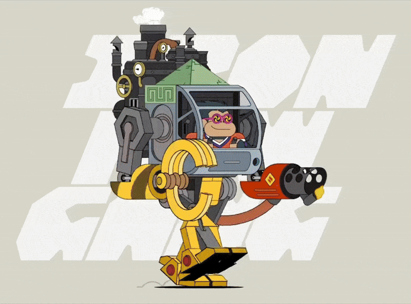 In 2022, I partnered with the talented Adam Grabowski to create a collection of animated NFTs. After a round of beer-fueled brainstorming, we came up with the idea of a post-apocalyptic Earth where monkeys battle for control in giant, jerry-rigged mechs (think Planet of the Apes, with mechs. The dominant faction (and the name of the collection) would be the mighty Iron Paw Gang.